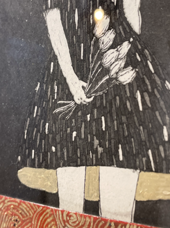銅版画の世界観に興味があるそうです。自分の作風に合うと思うので、より専門的な知識を身につけて自分のものにしていきたいですと話してくれました。今回の展示でも2点ゆかいな銅版画作品を出展しています。